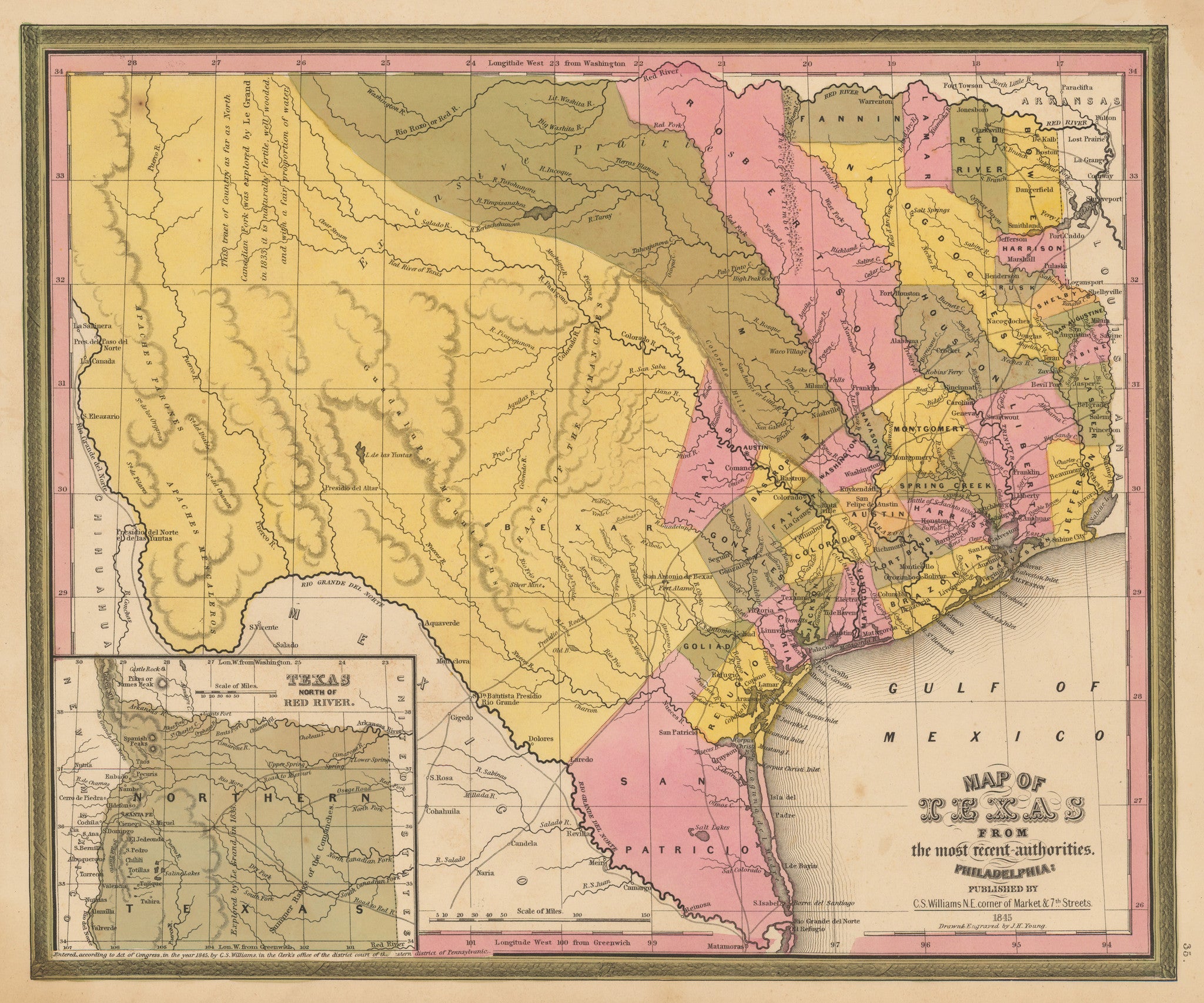 The State of Texas, 1845. David H. Burr’s Map of Texas is one of